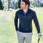 The iconic Traverse Stripe Quarter Zip Pullover is engineered for exceptional versatility, designed to be your favorite men's quarter zip pullover for the office, golf, walking, hiking, boating, skiing, travel or WFH. Our high quality 2-ply DryTec matte finish polyester is blended with spandex in a double knit to achieve exceptional durability, stretch for comfort, and UPF 50+, all with a supremely smooth and modern look.
