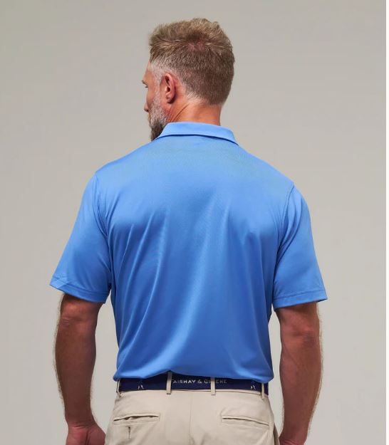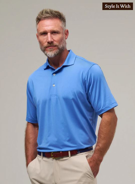 An essential solid color polo, featuring our updated look and feel. This light-as-air style is made with moisture-wicking stretch fabric, and it features a customizable memory wire collar that lets you find the perfect shape every time. A slightly tapered silhouette slims the body, and UPF 50+ fabric keeps you covered on the course.