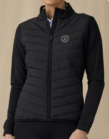 The Ida Hybrid Jacket is designed for performance with a padded front for warmth and stretch knit sleeves and back that allow full range of motion. Zippered hand pockets add utility by keeping balls, tees, and markers secure during play. Blending function with a polished look, this versatile layer is equally suited for the course, everyday wear, or as a top pick for corporate gifting and team uniforms.